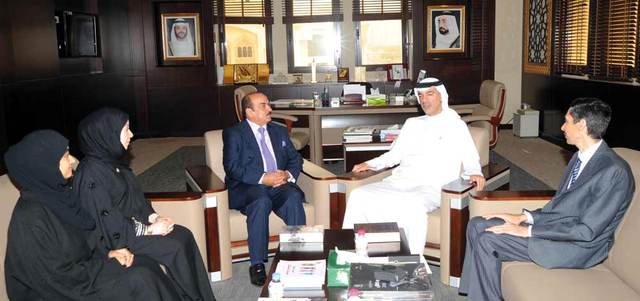 عبدالله العويس وعائشة العاجل وآمنة أحمد وهاني النجار خلال اللقاء. من المصدر