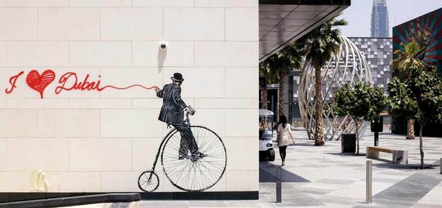 صورة لجدارية فنية على أحد مداخل مدينة «سيتي ووك» في دبي.