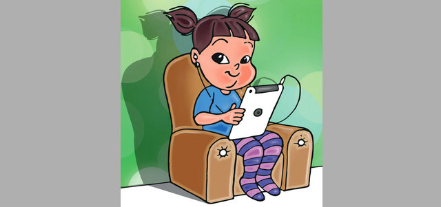 جلست على مائدة الإفطار.. وقبل أن أبدأ بالأكل.. تذكرت شيئاً مهمّاً جداً.. جهاز الـ«آي باد».. أسرعت إلى غرفتي وأخرجته من الشاحن، فأنا لابد أن أشاهد أفلام الكرتون وقت الإفطار. كانت ضحكة تتعالى بازدياد. كم أعجبني هذا الفيلم الكرتوني.. عدت إلى غرفتي، لأبدل ثيابي وأستعد للذهاب إلى بيت عمتي. حملت معي أيضاً الشاحن وغطاء الـ«آي باد».. وفور وصولنا إلى بيت عمتي، فتحت لعبتي المفضلة وهي الضغط على الصور المتشابهة.
