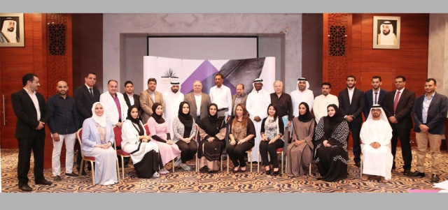صورة جماعية لفريق عمل ثقافة بلا حدود مع ممثلي دور النشر. الإمارات اليوم