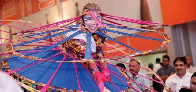 بأثوابهم المزركشة بالألوان الجميلة، التي تحمل في طياتها ثقافات الشعوب وحضاراتها، وعلى إيقاعات موسيقية عالمية تتناسق مع رقصاتهم الساحرة، تجوب العروض البهلوانية أروقة وردهات المعرض، ناشرة أجواء مفعمة بالفرح والحيوية لزوّار المعرض.