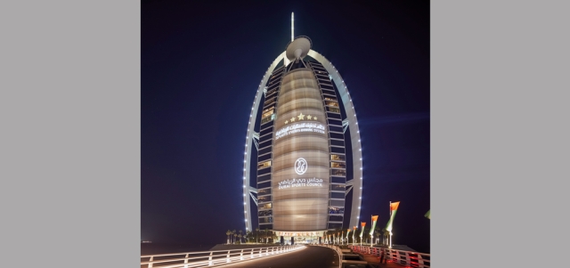 زين شعار مجلس دبي الرياضي، وشعار نظام تصنيف الفعاليات الرياضية واجهتي برج خليفة وبرج العرب في دبي، بمناسبة حفل تصنيف الفعاليات الرياضية الذي نظمه مجلس دبي الرياضي، ما يؤكد مكانة الرياضة في وطننا ومجتمعنا.