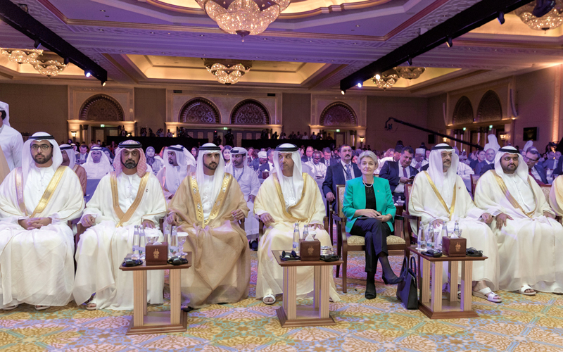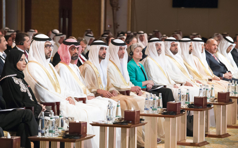وأشار إلى أن دولة الإمارات تعتبر مثالاً يحتذى به في هذا المجال، «فقد نجحت دولة الإمارات بقيادتها الرشيدة، بدءاً من المغفور له الشيخ زايد بن سلطان آل نهيان، في تمهيد الطريق أمام وضع وتنفيذ حلول فاعلة، وأود أن أؤكد مجدداً شكري لدولة الإمارات على قيادتها لهذه المبادرة». وأكدت المدير العام لليونيسكو إيرينا بوكوفا، أهمية المؤتمر والضرورة الملحة لاتخاذ إجراءات فاعلة وعملية. موضحة أن التراث الثقافي الذي يتعرض للدمار في منطقة الشرق الأوسط حالياً قد طالت تبعاته المجتمع الدولي، وأن منظمة اليونيسكو قد بدأت فعلياً في التحرك على نطاق عالمي من أجل حماية التراث الإنساني في مناطق الصراعات. مشددة على أن حماية التراث لا يجب أن تنفصل عن حماية حياة البشر، ولا يمكن أن ننتظر أكثر من ذلك، ومن هنا سنعمل معاً على وضع أسس ثقافية جديدة، وتوجه عالمي لحماية الثقافة والسلم والأمن الدوليين.