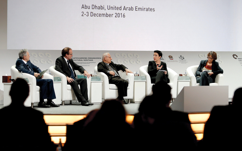 أكد المشاركون في مؤتمر «الحفاظ على التراث الثقافي المهدد بالخطر»، الذي اختتم أعماله، أمس، بقصر الإمارات في أبوظبي، التزامهم بتوحيد الجهود من أجل التراث بما يدعم الجهود الدولية لحماية التراث الثقافي المعرّض لخطر النزاع المسلح والإرهاب.