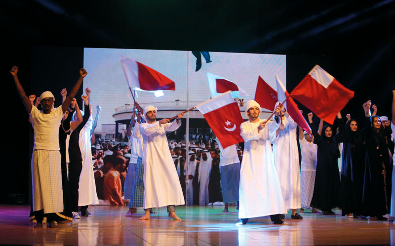 وتعايش الحضور في اللوحة الأولى في الأوبريت، مع مرحلة ما قبل تأسيس الاتحاد خصوصاً، فيما انتقل المؤدون في الثانية إلى الصعوبات المتعددة التي تخطاها المؤسسون، لتحقيق «الاتحاد»، وصولاً إلى مرحلة «توحيد الأعلام»، وإعلاء صرح الوطن، في اللوحة الثالثة. القيم الوطنية التي ترسخت جزءاً أصيلاً في صرح «الاتحاد»، حضرت في اللوحتين الرابعة والخامسة، لاسيما فضيلة «إغاثة الملهوف»، ورفع آثار الظلم والعدوان والكوارث عن أصحابها، إيماناً بأن وطن زايد الخير لا يفيض بخيراته على أبنائه فقط، بل يعم عطاؤه الجميع، في حين يظل الوطن بمثابة ملتقى للتعايش بأمن وسلام يستوعب الجميع من دون تمييز.