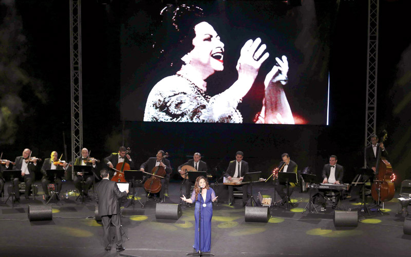 حلّت «كوكب الشرق»، الفنانة الكبيرة أم كلثوم، ضيفة، بروحها وأغنياتها، مساء أول من أمس، على مسرح جزيرة العلم بالشارقة، في ليلة طربية من ليالي مهرجان الشارقة للموسيقى العالمية، الذي ينظمه مركز فرات قدوري للموسيقى، برعاية هيئة الشارقة للاستثمار والتطوير (شروق)، سهر خلالها الجمهور مع الفنانة ريهام عبدالحكيم وأوركسترا دار الأوبرا المصرية، بقيادة المايسترو محمد الموجي، إحياءً لذكرى «سيدة الغناء العربي». وأبهرت فرقة دار الأوبرا المصرية، التي تضم 18 عازفاً يتقدمهم المايسترو محمد الموجي، الحضور بأدائها لمقطوعة موسيقية كلاسيكية، قبيل صعود الفنانة ريهام عبدالحكيم على المسرح، لتبدأ الأمسية قوية قبل انطلاقتها الفعلية، ومن ثم استهلت المطربة الشابة ثالثة أمسيات المهرجان بتقديمها لأغنية «ألف ليلة وليلة»، التي غنتها السيدة أم كلثوم عام 1969، وهي من مقام موسيقي يسمى «فرح فزا»، أحد مشتقات مقام النهاوند الذي يعتبر من أكثر المقامات الموسيقية التي يستخدمها الملحنون العرب في الأغنيات الرومانسية.