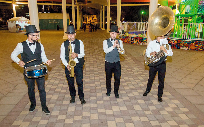 وحملت فرقة «الشارع» اللاتينية القادمة من كوبا وكولومبيا، زوار واجهة المجاز المائية إلى رحلة فريدة من نوعها عبر طرقات وأزقّة أميركا اللاتينية موطن (السالسا والبوب اللاتيني)، وعوالم الموسيقى الكاريبية الفريدة، التي تتسم بالإيقاع والحماس والنكهة الخاصة بهذا النوع المختلف من الفنّ، ناشرة البهجة في عزفها المتجوّل، الذي قطع فيه العازفون ممرات الواجهة محيين الحضور، الذين تفاعلوا بشكل لافت معهم وسط فرحة كبيرة، واحتفاء بهذه الموسيقى الساحرة، التي حققت شهرة كبيرة حول العالم.