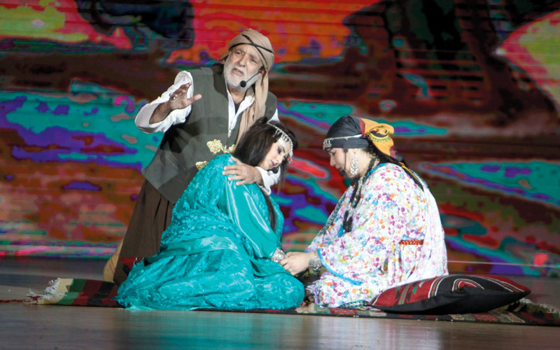 مسرحية الافتتاح الجزائرية «حيزية» تضمنت لوحات غنائية واستعراضية متكئة على الفلكلور الجزائري. الإمارات اليوم