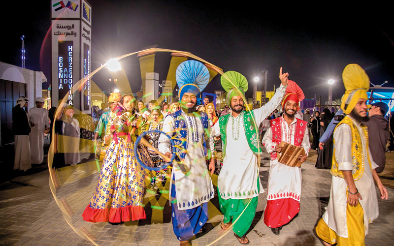 منصات شهدت دورة المهرجان الأخيرة العديد من الفعاليات التراثية ومنصات العرض التي تتسم بالواقعية والتفاعل الحي، واكتشف الزوّار المهرجان عبر المعارض التفاعلية التراثية، والأحياء التراثية الخليجية والعربية والعالمية التي صمم كل منها بطريقة عمرانية تمثل عمران كل دولة مشاركة. وركز كل حي على المنتجات التقليدية والطعام الشعبي التقليدي، والحرف اليدوية التراثية والعروض الفنية الفلكلورية. وضمت أسواق المهرجان أكثر من 500 محل لبيع المنتجات التقليدية التراثية من 17 دولة، وكان هناك تركيز كبير على الأكلات العالمية للدول المشاركة وغيرها. 2000عرض فلكلوري قدمتها عشرات الفرق الشعبية الإماراتية والخليجية والعربية والعالمية خلال المهرجان. 17دولة خليجية وعربية وعالمية شاركت في المهرجان وعرضت تراثها وحرفها التقليدية وفنونها ومنتجاتها. 50عرضاً للألعاب النارية زينت سماء المهرجان ومنطقة الوثبة خلال فترة الفعاليات. |