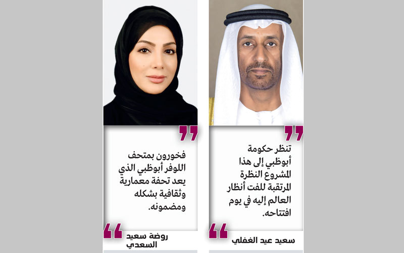 وقال سعيد عيد الغفلي إن «وجودنا اليوم في هذا الصرح الثقافي المرتقب يأتي في إطار تحقيق التكامل والتنسيق بين اللجنة التنفيذية التابعة للمجلس التنفيذي والجهات الحكومية، ويأتي كذلك ترجمة لرؤية حكومة أبوظبي في ترسيخ مكانة العاصمة أبوظبي الثقافية على المستويين الإقليمي والعالمي، وللوقوف على سير عمل المشروع سعياً إلى تدشينه في الموعد المحدد، إذ تنظر حكومة أبوظبي إلى هذا المشروع النظرة المرتقبة للفت أنظار العالم إليه في يوم افتتاحه».