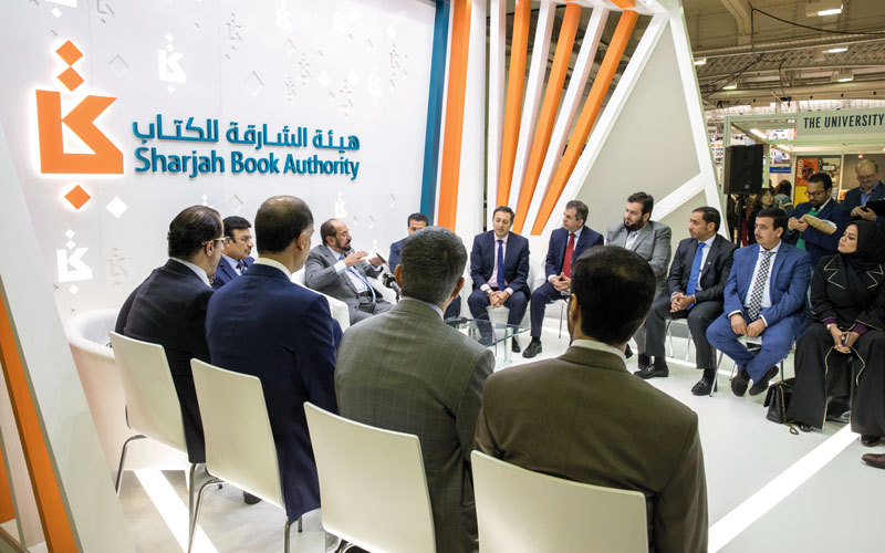 خلال لقائه رؤساء تحرير الصحف وإعلاميين في «لندن للكتاب»