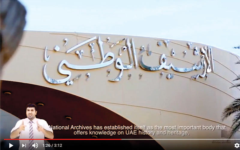 أطلق «الأرشيف الوطني»، بالتعاون مع جمعية الإمارات للصم، سلسلة من الأفلام الوثائقية الوطنية بلغة الإشارة موجهة إلى فئة الصم، انطلاقاً من حرصه على تعزيز الثقافة الوطنية، وتنمية الحسّ الوطني لدى هذه الشريحة من أبناء المجتمع، ودعمها لتقريب المسافة بينها وبين الآخرين.