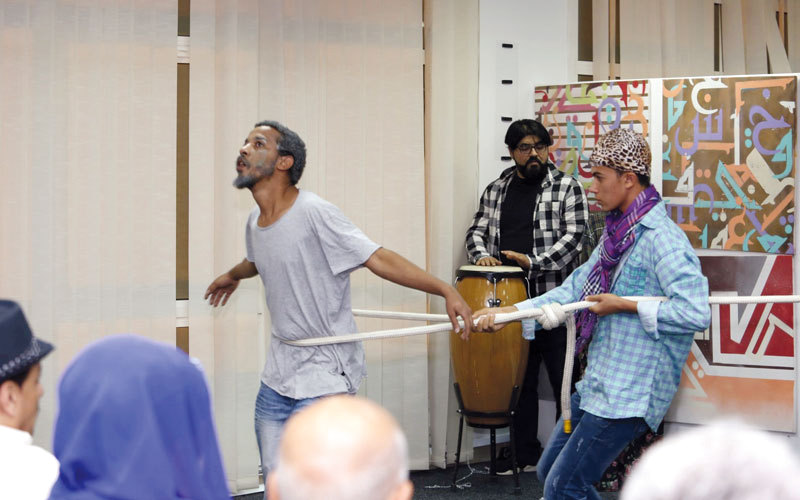قدمت فرقة مسرح أبوظبي، مساء أول من أمس، تجربة مختلفة خاضها المسرح الإماراتي باستضافة مسرحية «مزيد من الكلام» للكاتب والمخرج الإماراتي صالح كرامة، وذلك من دون خشبة، في المقر المؤقت لاتحاد كتاب وأدباء الإمارات فرع دبي، الذي لا يمتلك قاعة عرض مسرحية بالأساس، إذ تقدم المسرحية رؤية مغايرة بين الارتباط بالأرض أو الرحيل، وتابعها الحضور على بعد أمتار قليلة، والذين أعاد تداخلهم مع مشهدية العرض تقاليد مسرح الشارع، بكل ما يحيل إليه من تفاعل مباشر بين الممثلين والجمهور.