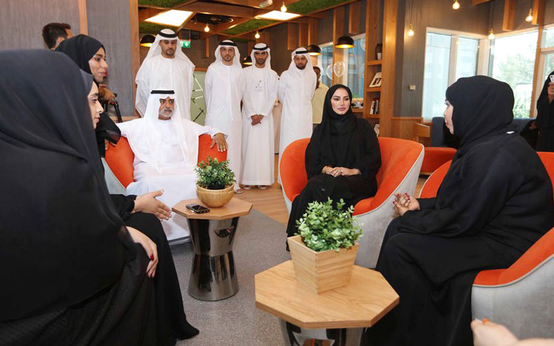 نهيان بن مبارك تجول في أروقة الكافيه والتقى مع موظفي «الثقافة». من المصدر
