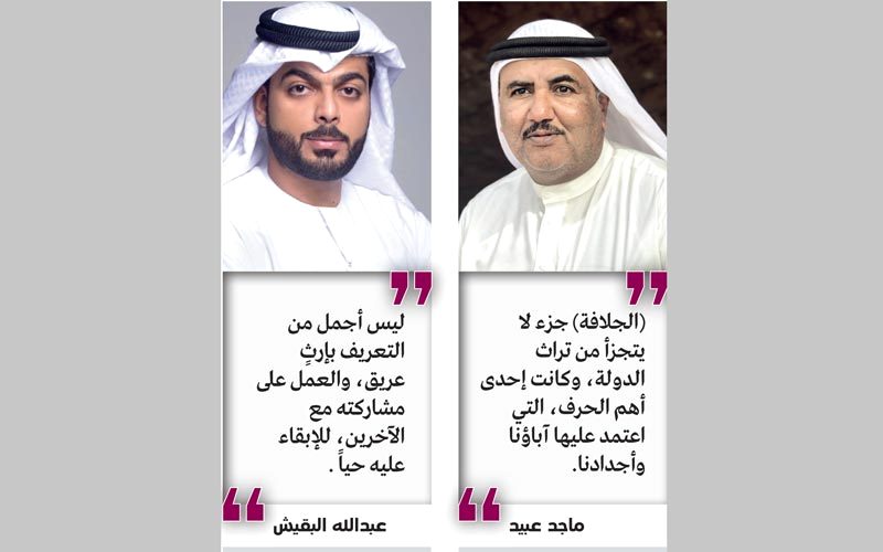 والتقى المصور البقيش، خلال «الرحلة الوثائقية المصورة»، أحد أبرز «الجلاليف» الشباب، الذي ورث المهنة عن والده الجلاف الشهير عبيد جمعة بن ماجد الفلاسي، وآثر الحفاظ عليها وعدم التخلي عنها، مسخراً لها دراسته الأكاديمية (إدارة أعمال من الولايات المتحدة الأميركية).