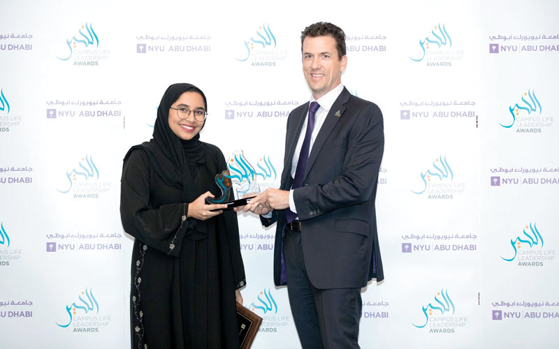 احتفت جامعة نيويورك أبوظبي بالطلبة الفائزين بـ«جوائز الخير لريادة الحياة الجامعية»، في فئاتها الـ12، خلال حفل خاص نظم أخيراً في أبوظبي.