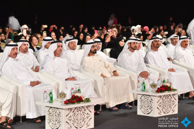 وحضر الحفل الذي أقيم تحت رعاية صاحب السمو الشيخ خليفة بن زايد آل نهيان رئيس الدولة سمو الشيخ حمدان بن محمد بن راشد آل مكتوم ولي عهد دبي والفريق سمو الشيخ سيف بن زايد آل نهيان نائب رئيس مجلس الوزراء وزير الداخلية وسمو الشيخ أحمد بن سعيد آل مكتوم رئيس هيئة دبي للطيران الرئيس الأعلى لمجموعة طيران الإمارات وسمو الشيخ حشر بن مكتوم آل مكتوم مدير دائرة إعلام دبي وعدد من أصحاب المعالي الوزراء وكبار المسؤولين في الدولة وهيئات التدريس في مختلف المدارس المشاركة في الحدث وحشد من الطلبة وذويهم .