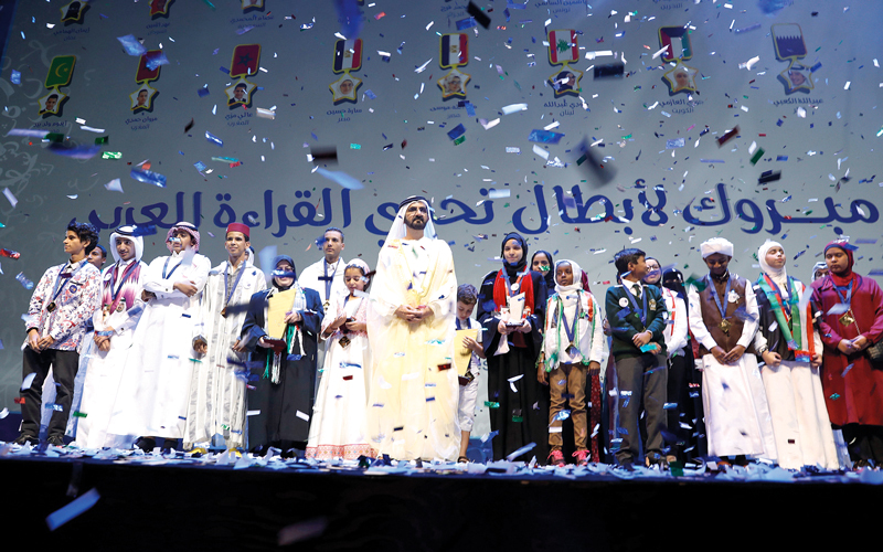 محمد بن راشد كرّم الفائزين بجوائز الدورة الأولى من تحدي القراءة العربي. أرشيفية