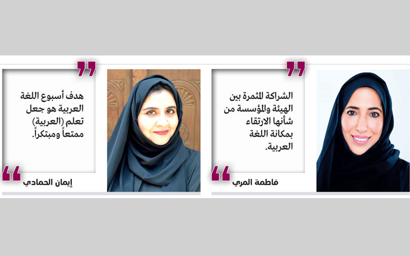 وخصصت المؤسسة أسبوع اللغة العربية للاحتفاء بإرث اللغة العظيم، وبمكانتها ودورها المهم في تعزيز الهوية، وتزامن أسبوع اللغة العربية مع احتفاء المؤسسات التعليمية باللغة العربية في مختلف أنحاء دولة الإمـارات.
