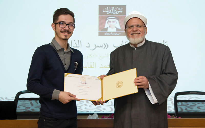 وقال مدير الجامعة، الدكتور رشاد سالم، خلال حفل التكريم، إن اختيار كتاب «سرد الذات» في الدورة الأولى من المسابقة يأتي لما له من أهمية توثيقية لتاريخ إمارة الشارقة، مضيفاً أن المسابقة التي تنظمها عمادة شؤون الطلبة بالحامعة بالتنسيق مع إدارة مكتبة الجامعة من شأنها أن تكون أحد برامجها التراثية المهمة، كما تعد من المسابقات الثقافية الرامية إلى تعزيز ثقافة القراءة لدى الطلبة وتوجيههم نحو الكتب المفيدة لاكتساب المعلومات منها، وتنمية مواهبهم في أساسيات ونمط تلخيص الكتب لتأهيلهم على تقديم ملخصات احترافية وشاملة لجميع جوانب الكتاب، وبث روح التنافس العلمي بين الطلبة.