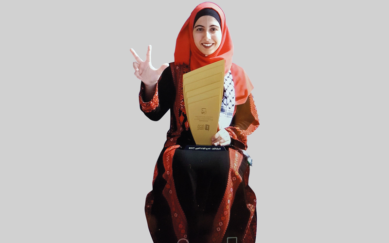 «الإمارات اليوم» التقت الطالبة عفاف الشريف في منزلها بمدينة جنين، عقب عودتها من دولة الإمارات العربية المتحدة، راصدة أجواء الفرحة في منزلها ومدينتها، حيث كانت الابتسامة تعتلي وجوه والديها وأشقائها، الذين أبدوا فخرهم بإنجاز ابنتهم، مؤكدين على مواصلة تشجيعهم لها لتحقيق المزيد من إنجازات التميز والإبداع.