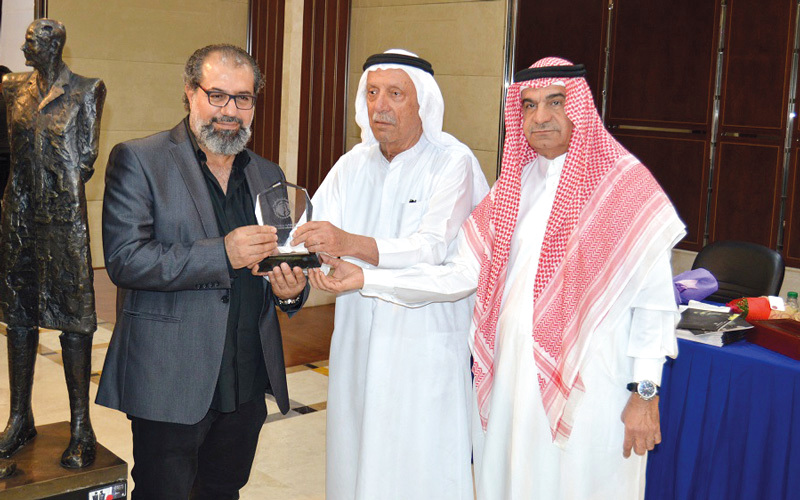 وفي ختام الافتتاح قدمت المؤسسة درعاً تذكارية للفنان.