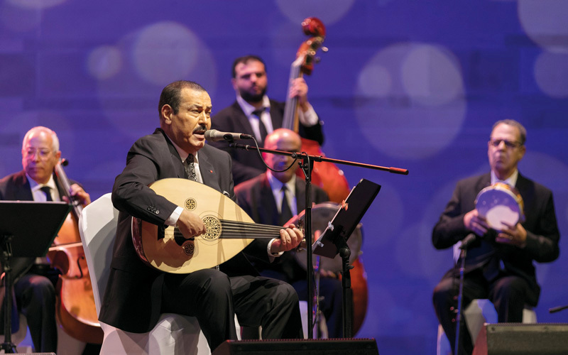 ورافقت الفنان، الملقب بـ«بافاروتي تونس»، فرقة مؤلفة من 16 موسيقياً من المغرب العربي وأوروبا، صاحبته في عزف ألحان أضافت المزيد من السحر على أدائه الذي يمزج بين كلاسيكيات الغناء العربي بأنواعه، والأناشيد، وأغاني التراث الشعبي بما فيها المواويل والموشحات، إلى جانب الغناء بالأساليب الحديثة.