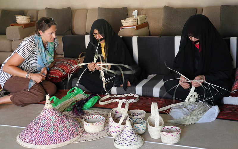 وتحتفي الجلسات التفاعلية عن الحرف اليدوية التقليدية، التي تقام كل ثلاثاء، بالتراث الإماراتي والمهارات والحرف التقليدية، إذ يطلع خلالها الزوار على كيفية استخدام العناصر البيئية لصنع ابتكارات يدوية تستخدم في الحياة اليومية والتجارة أيضاً، كما تتناول هذه الجلسات جوانب من تاريخ الإمارات والفنون التي عرفها الأجداد قديماً.