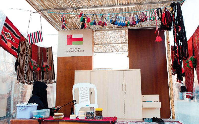تبرز معروضات الحي الخليجي، في مهرجان الشيخ زايد التراثي، في منطقة الوثبة بأبوظبي، ملامح من تراث أبناء دول مجلس التعاون، الذي يتقاطع في بعض الحرف التقليدية.