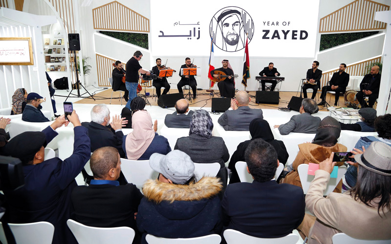 على آلة العود وبمصاحبة فرقته الموسيقية، اصطحب العازف الإماراتي فيصل الساري جمهور معرض باريس للكتاب إلى جماليات الموسيقى العربية، وذاكرة المجتمع الإماراتي، ليجسد تحت عنوان «حلم زايد» القيم التي بنى عليها المغفور له بإذن الله الشيخ زايد بن سلطان آل نهيان دولة الإمارات. وجاء الحفل الموسيقي بحضور الشيخة بدور بنت سلطان القاسمي، المؤسس والرئيس التنفيذي لمجموعة كلمات، ووزيرة الثقافة وتنمية المعرفة نورة بنت محمد الكعبي، وعدد من الكتاب والمثقفين والإعلاميين العرب والإماراتيين المُستضافين في فعاليات اختيار الشارقة ضيفاً مميزاً على معرض باريس للكتاب. واستهل الساري معزوفاته بالنشيد الوطني الإماراتي، ليقدم كونشيرتو إماراتياً مكوناً من ثلاثة مقاطع يعتمد أولها على الإيقاع الشعبي الإماراتي، فيما يستلهم الثاني إيقاع عيالة العين وعيالة الساحل وهو عبارة عن قطعة موسيقية رثائية تعبر عن الحزن لفقدان المغفور له الشيخ زايد بن سلطان آل نهيان، أمّا الحركة الثالثة فتعتمد على إيقاع الستاتي وهو من الإيقاعات المحلية المعروفة بسرعتها ونشاطها ليعبر فيها عن مفاهيم العطاء والإنجاز.