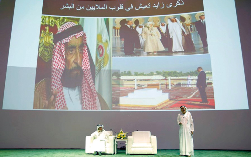 زكي نسيبة خلال الندوة التي حملت عنوان «عام زايد». من المصدر