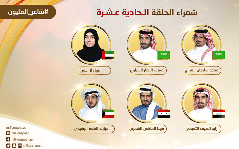 الشعراء المتنافسون في الحلقة الـ11 من البرنامج. من المصدر