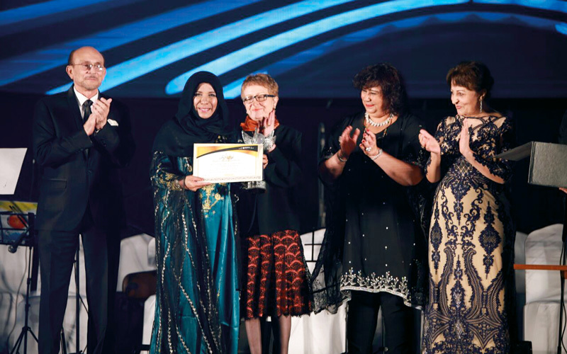 خلال تكريم عائشة عبدالرحمن بحضور وزيرة الثقافة المصرية والفنان محمد صبحي. الإمارات اليوم