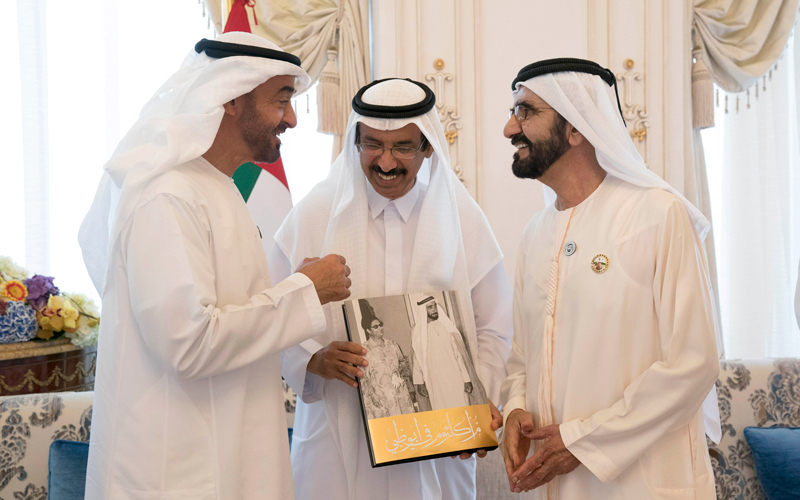 محمد بن راشد ومحمد بن زايد يتلقيان نسختين من كتاب «أم كلثوم في أبوظبي»
