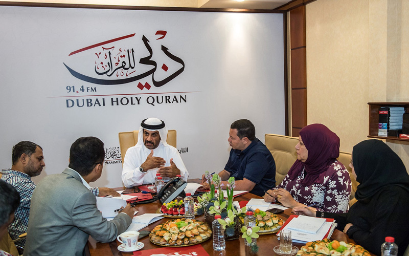 بن دلموك مع ممثلي وسائل الإعلام المحلية للكشف عن الدورة الرمضانية لإذاعة دبي للقرآن. من المصدر