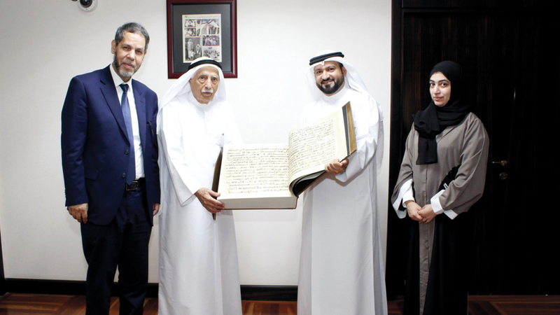سلطان القاسمي يُهدي جمعة الماجد نسخة مصوّرة من مصحف عثمان