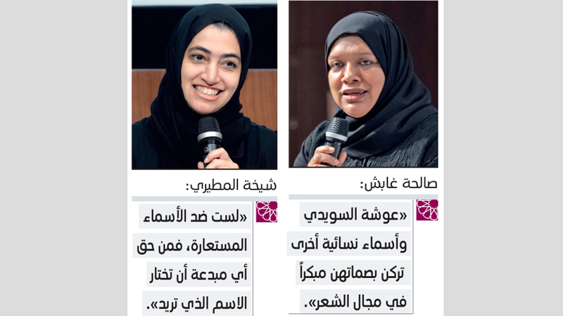 وأشارت إلى أن «فتاة العرب»، الراحلة عوشة بنت خليفة السويدي، تركت بصمتها مبكراً في مجال الشعر، بالإضافة إلى أسماء أخرى شكّلت تجارب صاحباتها ظواهر في تلك الفترة، موضحة أن بعضها كانت تقدم تحت أسماء مستعارة، وهذا ارتبط - إلى حد كبير - بظروف الحياة الاجتماعية، والعادات التي كانت لها سطوتها على المرأة، خصوصاً أن الكتابة نوع من التعبير عن الذات.