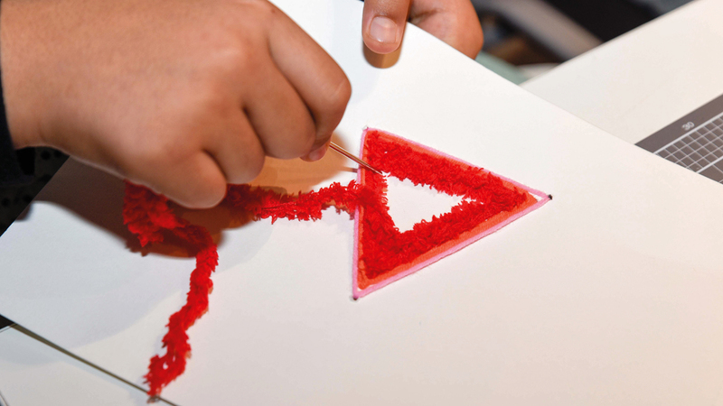 وتضمنت الورش طرح بعض المفاهيم والطرق الفنية المستخدمة في تصميم كتاب الخيوط، الذي يحاكي الفنون التراثية المتعلقة بصناعة الأزياء وطرحها بشكل مصغر من خلال إطلاق مخيلة الطفل المشارك ومساعدته على ابتكار أشكال مجسمات تمزج بين نسيج الخيوط الملونة وبعض العناصر المساعدة لتصميم لوحات وصفحات كتاب الخيوط.