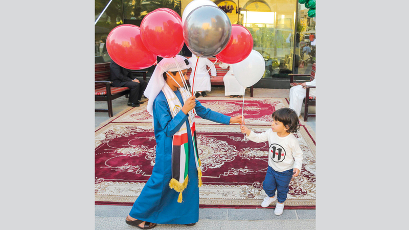 شخصيات كرتونية حملت مع الأطفال والزوّار علم دولة الإمارات بطول 30 متراً.