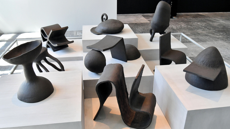 «المركب» عنوان عمل الفنان، حمزة العمري، الذي استخدم فيه خط المشق العربي، وطريقة تفاعل الحروف مع بعضها، وتفاصيلها المميزة وأشكالها من أجل تشكيل قطعة أثاث حديثة أنيقة تشبه مركب «الداو» الذي ينقل البضائع والركاب.