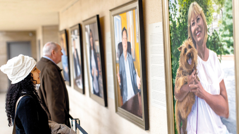 تحدق وجوه المهاجرين في لوحات بالحجم الطبيعي رسمتها الفنانة الأميركية بيتسي آشتون في عين الناظرين، وكأنها تتلهف لسرد قصص أصحابها الذين تركوا أوطانهم لخوض صراعات جديدة في أرض غريبة.