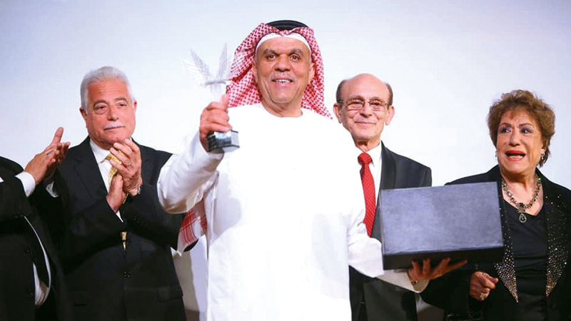 إسماعيل عبدالله على منصة تكريم المهرجان. الإمارات اليوم