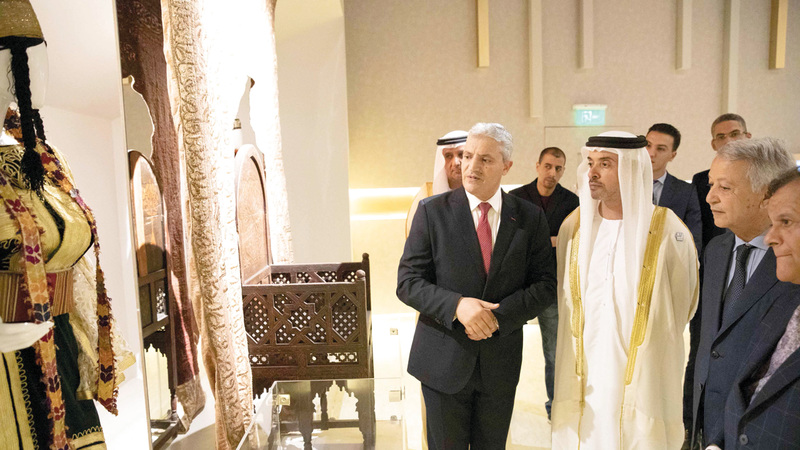 وقام سمو الشيخ هزاع بن زايد آل نهيان، بجولة بأرجاء «المغرب في أبوظبي»، تضمنت عدداً من الأنشطة والفعاليات الثقافية والفنية والتاريخية، إضافة إلى مجموعة من التحف والآثار، لتبدأ الجولة بالدخول من البوابة النحاسية المضيئة والمثبتة بـ16 عموداً نحاسياً، مروراً على الأرض المرصّعة بمليوني قطعة زليج، وبالجدران الزاهية الألوان، والأعمدة الرخامية الأنيقة، والسقف المتلألئ بالثريات النحاسية، لتستكمل الجولة بمتابعة عروض موسيقية امتزج فيها التقليدي بالروحي، والتراثي بالعصري، بالإضافة إلى عروض القفطان المغربي.