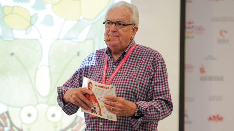 استعرض الفنان ستيوارت جي ميرفي، لأطفال «الشارقة القرائي»، خطوات الكتابة الناجحة، خلال ورشة بعنوان التعليم البصري.