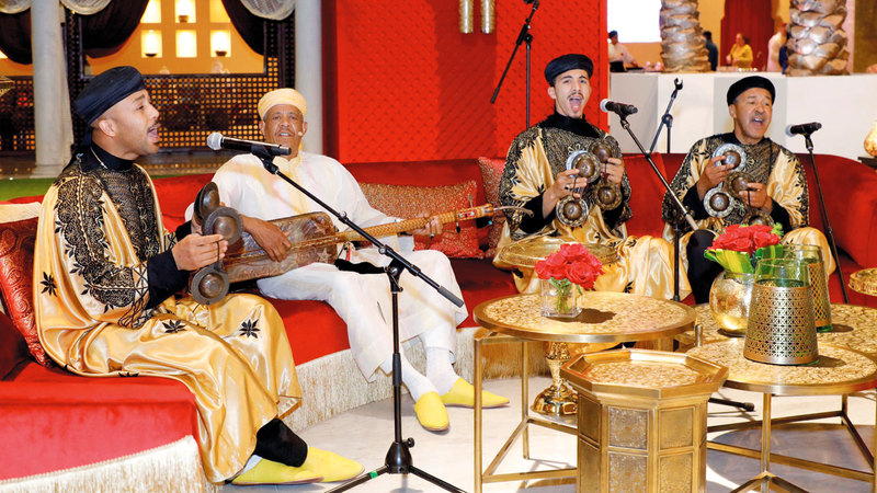 على وقع أنغام أصيلة، ووسط أجواء أندلسية، تطرب فعالية «المغرب في أبوظبي» زوارها بشتى ألوان الغناء الشعبي، وتعزف نخبة من الموسيقيين مقطوعات متنوعة في جنبات الفعالية التي يستضيفها مركز أبوظبي الوطني للمعارض حتى بعد غد.