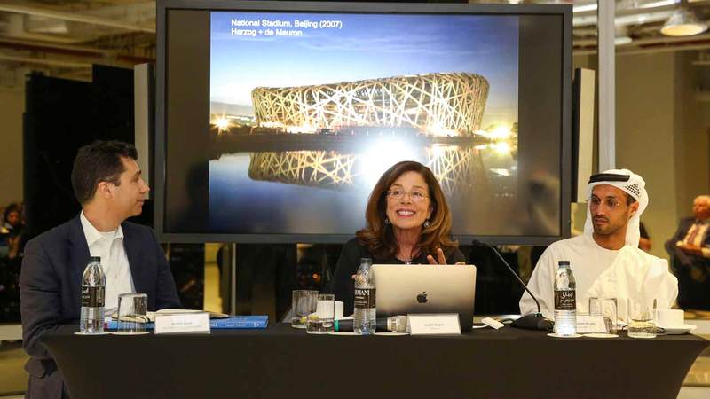 أدار الجلسة، التي أقيمت في الطابق 112 من برج خليفة، المعماري الإماراتي أحمد بن شبيب، وشارك فيها كبير المهندسين في شركة SOM، ديمتري جاجتش.