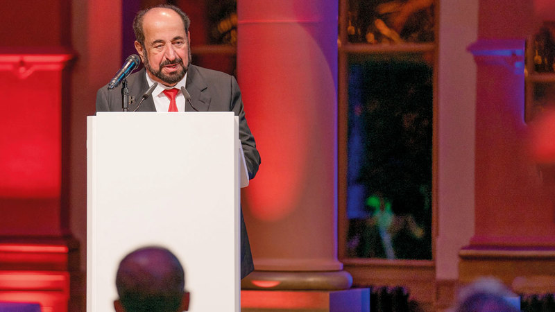 وقدم صاحب السمو حاكم الشارقة في كلمته الشكر إلى الدكتور جورج أولمز، المؤسس والرئيس التنفيذي لدار أولمز للنشر، التي تترجم مؤلفات سموه إلى اللغة الألمانية، قائلاً: «أشكر صديقي جورج أولمز، فنحن على مدار 40 سنة التقينا على الكلمة الصادقة، وكان نشاطنا أن نترجم الكتب العربية إلى لغات أخرى».