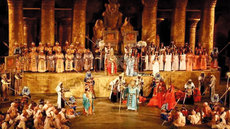 انطلقت في مدينة الأقصر المصرية، أمس، عروض أوبرا عايدة بساحة معبد الملكة حتشبسوت في البر الغربي بالمدينة، وتعيد هذه العروض للمصريين كثيراً من صور الحياة التي عاشها أجدادهم القدماء، من بينها ممارسة قدماء المصريين الفنون بشتى صورها، من رسم ونحت وغناء ورقص وتمثيل.