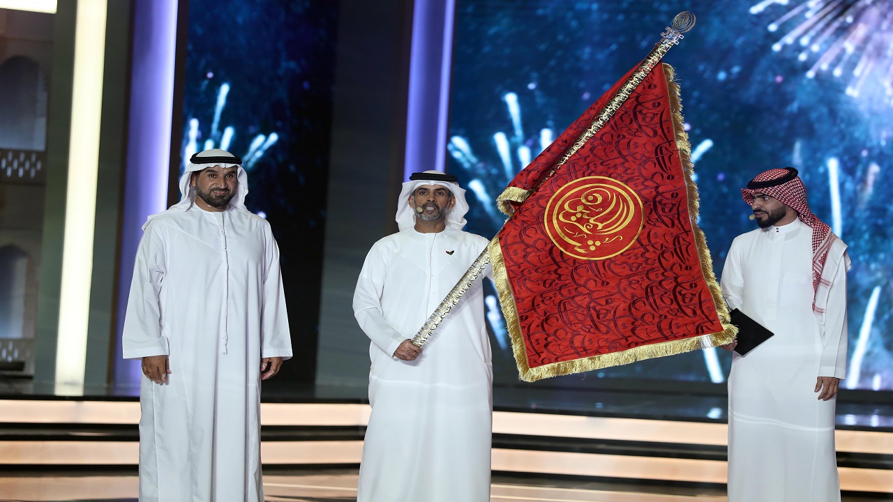 مبارك بالعود العامري يحمل البيرق ويهديه للإمارات.