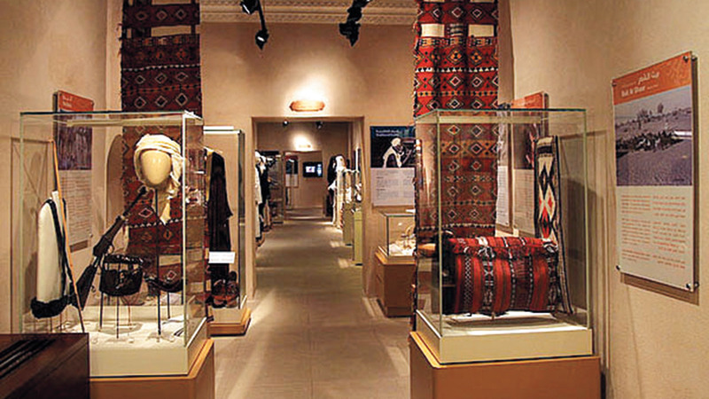 ولتحقيق الأهداف التي من أجلها افتُتح المتحف، فقد تم تصميم الأقسام بطريقة حرفية تحاكي جغرافية المنطقة، إذ استحضرت تقسيمات المتحف الصحراء والسواحل والواحات والجبال والوديان، إلى جانب التصميمات التي تكشف أساليب الحياة والعادات والتقاليد والاحتفالات، حيث جاءت هذه التقسيمات والتصميمات ليتسنى للزوار عيش تجربة مثالية تمكنهم من استحضار التاريخ والغوص في تفاصيله. ومن بين أهم المقتنيات القديمة والنادرة التي يزخر بها المتحف عدد من الأدوات الموسيقية الشعبية القديمة، وآلة النسيج «السدو»، ومجموعة من الحُلي الذهبية والفضية من زينة النساء في ذلك الوقت.